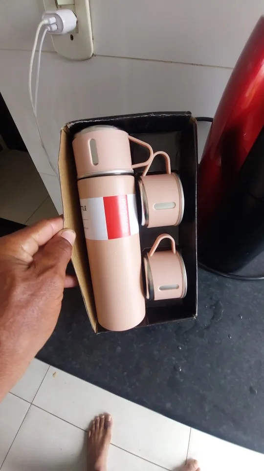 O Kit Vacuum Flask Set redefine o conceito de praticidade. Feita em aço inoxidável de parede dupla com isolamento a vácuo, ela mantém o calor ou o frescor da sua bebida por muito mais tempo. O grande diferencial? Um conjunto elegante com 3 xícaras inclusas, permitindo que você compartilhe seu café ou chá com amigos e colegas no trabalho, em acampamentos ou viagens, com total sofisticação.