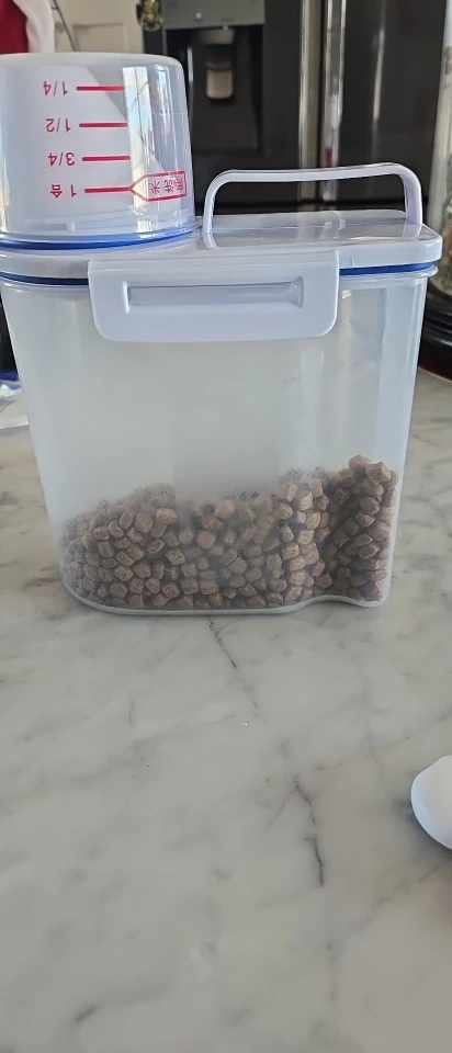O Container de Armazenamento Premium Pet é o upgrade que sua lavanderia ou cozinha precisa. Com tecnologia de vedação hermética, ele cria uma barreira total contra o ar e a umidade, preservando os nutrientes e o sabor original da comida. Com um design moderno e sofisticado, ele substitui os sacos plásticos feios por uma peça de decoração funcional que facilita a sua rotina de alimentação.